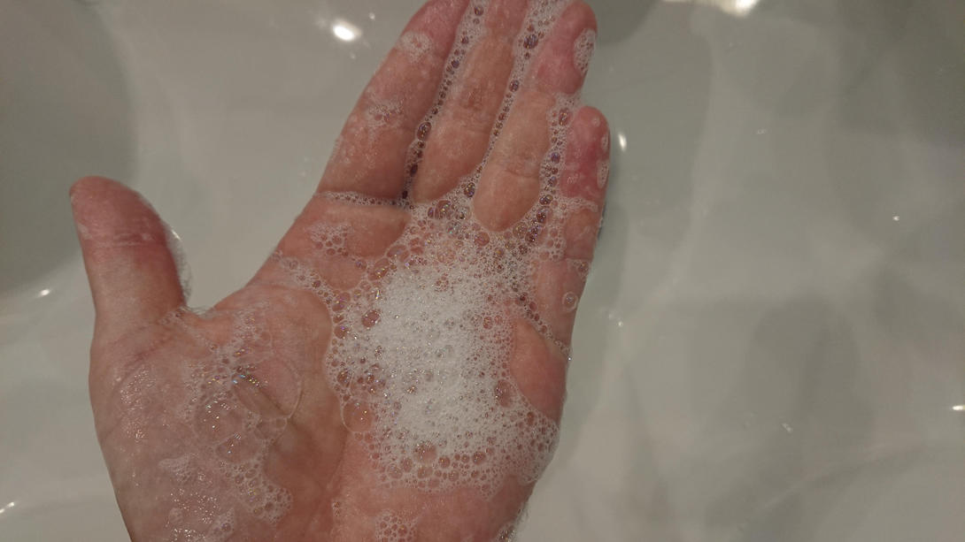 その後、もうワンプッシュ手にとり水分を加えるとやわらかな泡が生まれ、心地よい肌触りで
