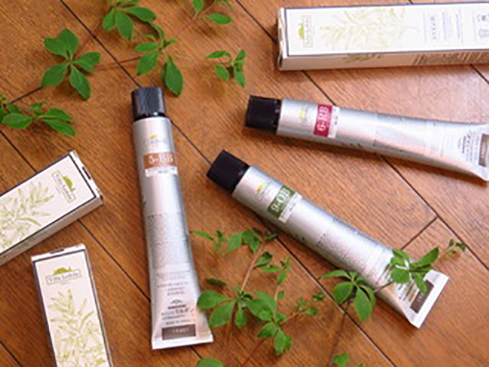 ◉オーガニックの植物の力を用いて染まりを良くする事により、アルカリや過酸化水素の量を抑え、ダメージを軽減し繰り返し染めても痛まず艶やかな仕上がりを実現。